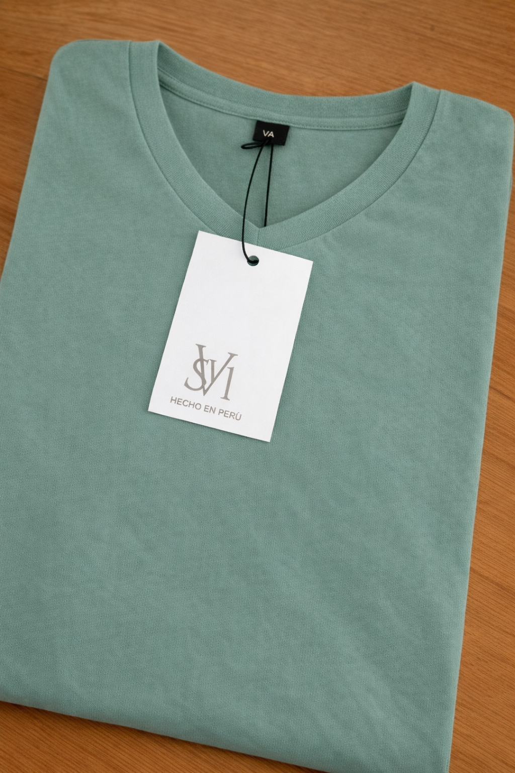 Polera Algodón Cuello V Verde CementoPolera Algodón Cuello V Verde Cemento