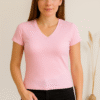 Polera Algodón Mujer Cuello V Rosa - AjustadoPolera Algodón Mujer Cuello V Rosa – Ajustado
